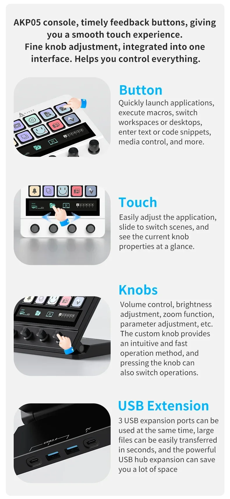 Ajazz AKP05E Desktop Mechanical Keyboard USB Mini Macro Keyboard Multimedia Multi-Function Streamdock Laptop Controller Gaming